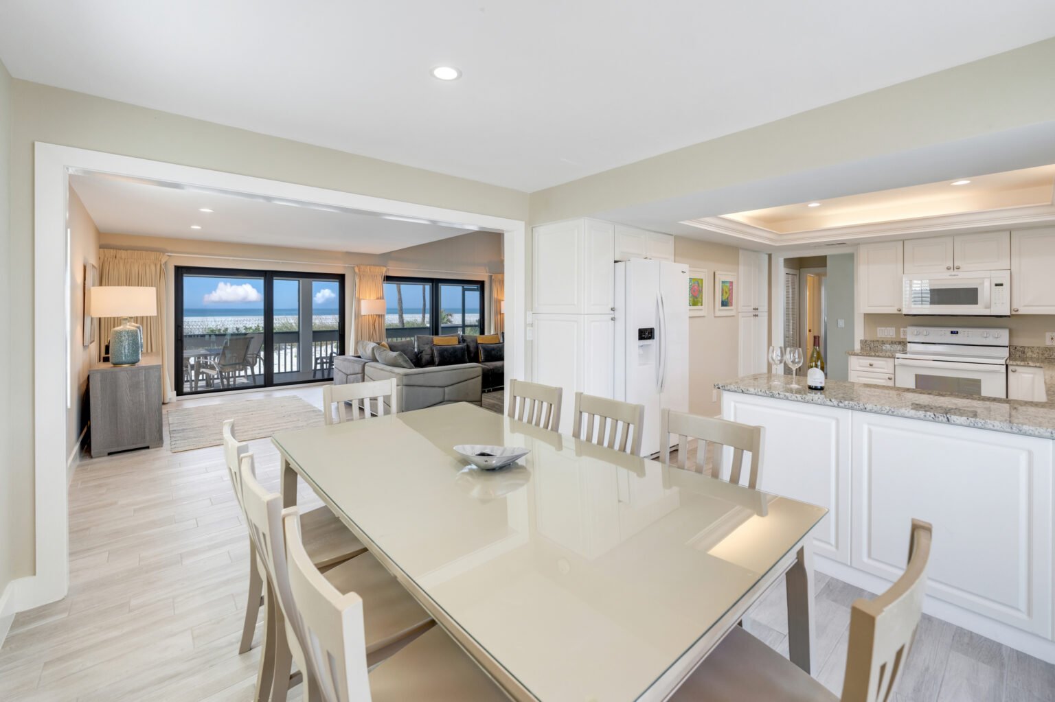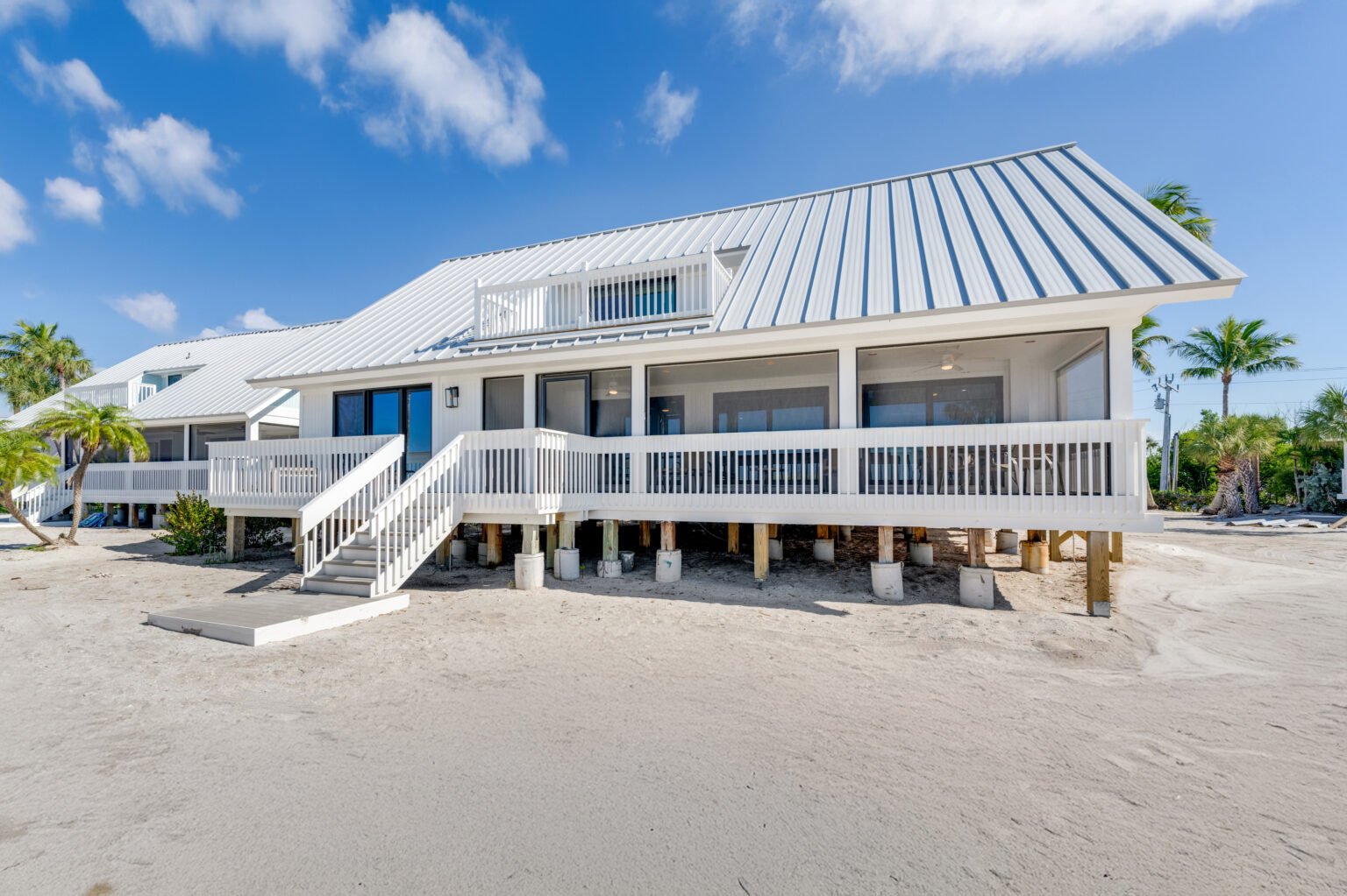 Experience the essence of beachfront living in Beach Home 5, a spacious 2,800-square-foot retreat just steps from the sand. This four-bedroom, four-bathroom home offers an inviting open floor plan designed for both entertaining and relaxation. The living area features a large television and seamlessly connects to a fully equipped kitchen. From the screened lanai, take in stunning views of the beach and Captiva’s breathtaking sunsets.